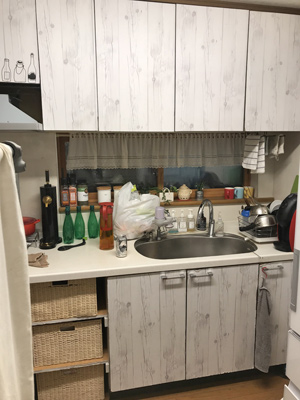 今お部屋の中にある家具等に合わせたベーシックな色合いのキッチンを設置しました。